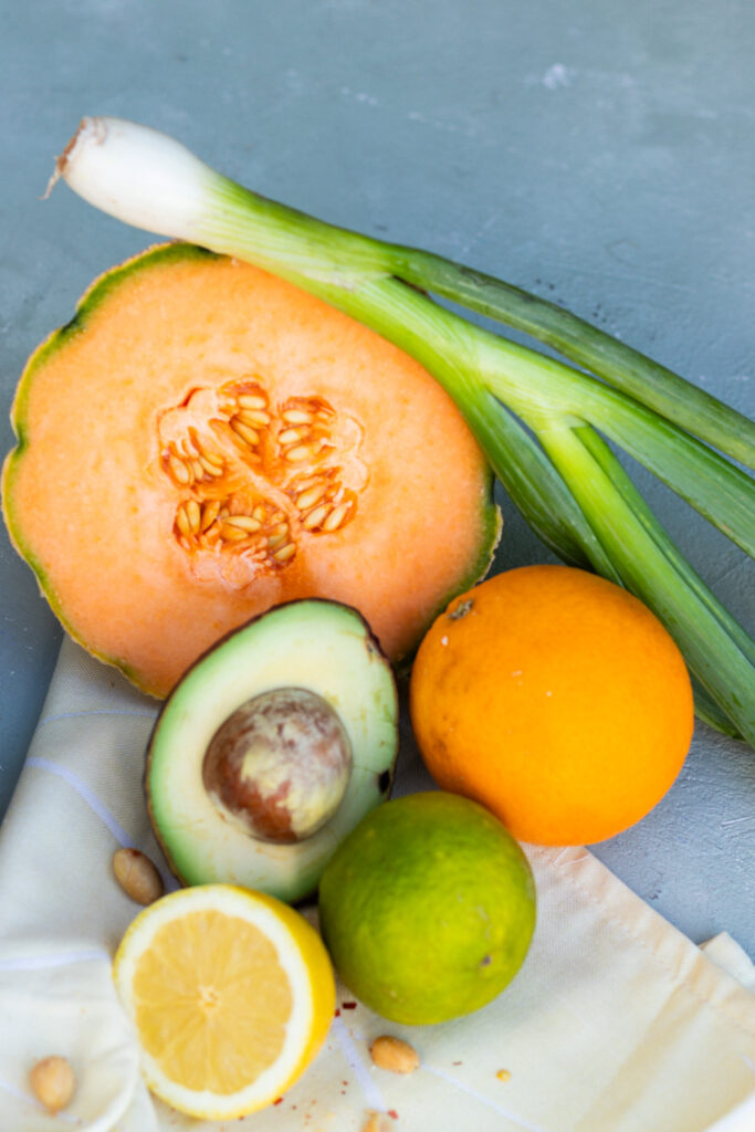 - Für die Marinade: Saft von der Orange, Limette und der halben Zitrone auspressen, mit Sojasauce und Honig mischen und mit dem Chilli Mix von Kotanyí abschmecken.