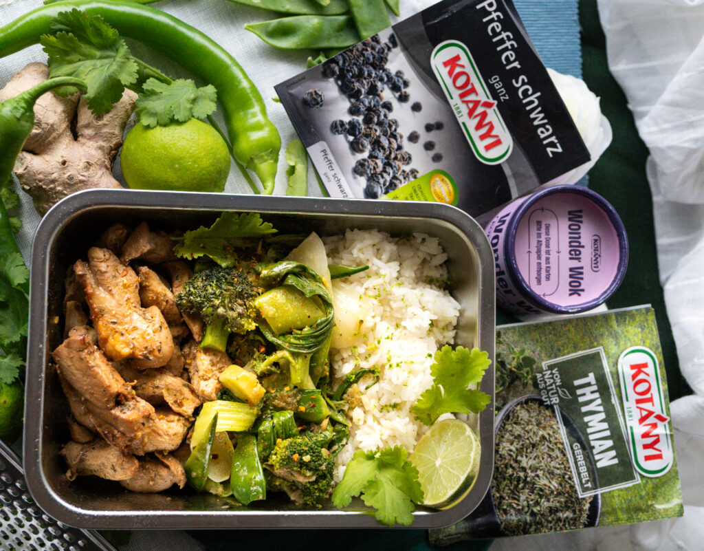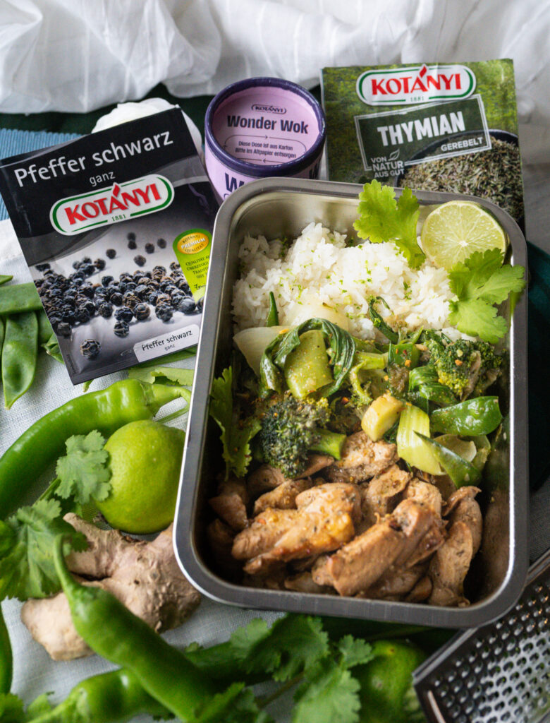 Zusammen mit EP Austria und den Gewürzen von Kotanyí darf ich zum Jahresbeginn ein Rezept zaubern, dass sich ideal als Mealprep eignet. Dabei zeigt das Rezept eine Variante die beliebig abgewandelt werden kann durch verschiedene Gemüsesorten oder Marinaden Kombis, denn wer will schon jede Woche das selbe essen 😉